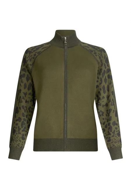 Суитшърт с цип и животинска шарка - Каки