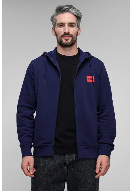 Худи с цип и паднали ръкави - Тъмносин