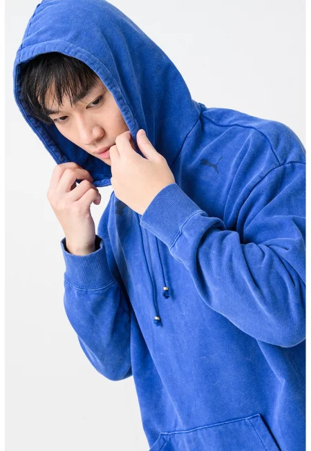 Худи с лого и джоб кенгуру - Кралско Синьо/Бял