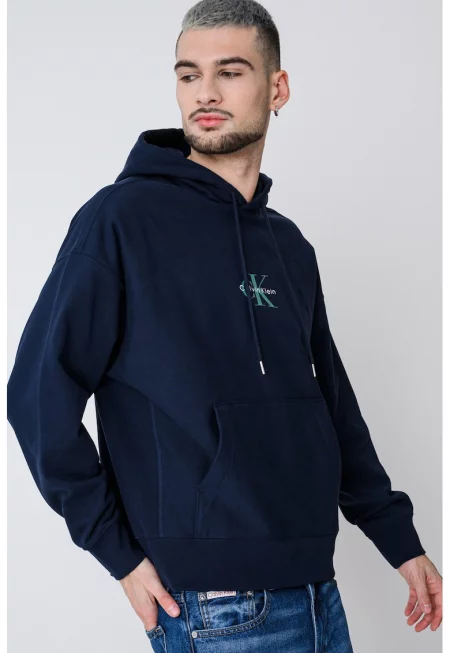 Суитшърт с памук с къс цип - Ултрамарин синьо