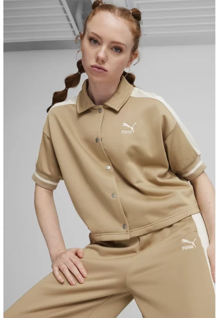 Суитшърт с паднали ръкави и капси - Бял/Бежов