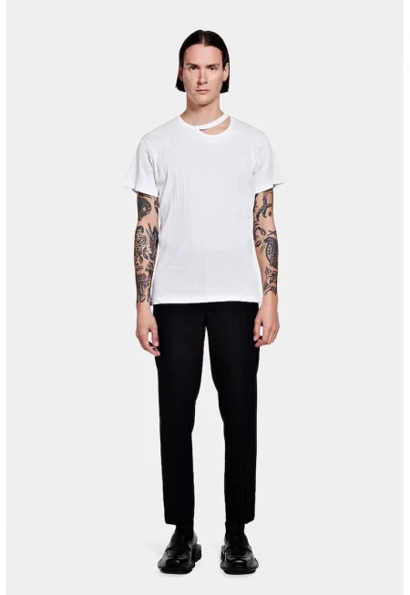 Бяла фланелка от жарсе с изрезка на врата - Черен