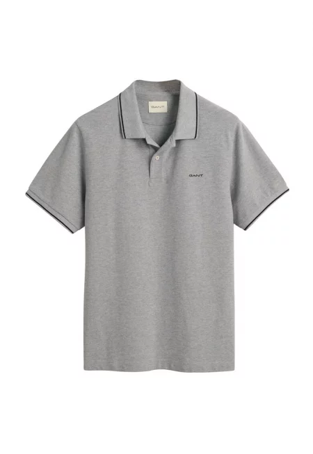 Тениска от пике с яка - Светло сив