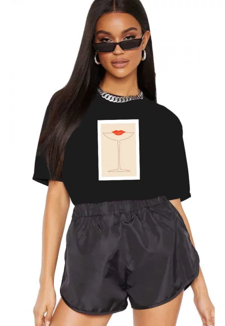 Черна дамска тениска - Cocktail Kiss
