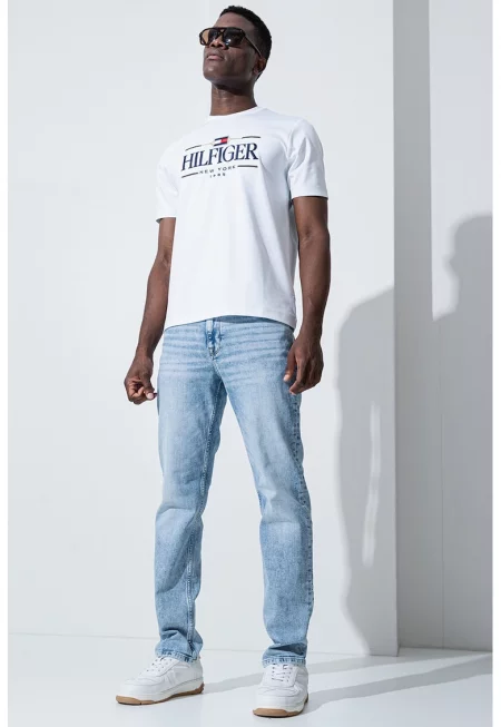 Памучни тениски с бродирано лого - 2 броя - Бял/Син