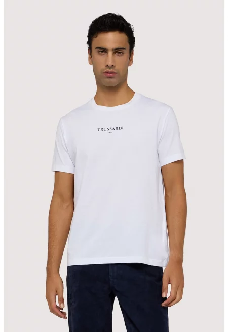 Памучна тениска с принт на гърба - Бял/Черен/Син