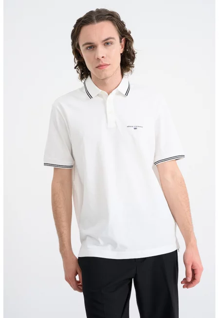 Памучна тениска с яка - Бял