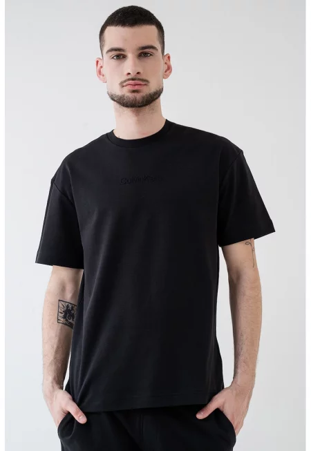 Тениска с овално деколте и лого - Бял/Сиво-кафяв/Сребрист