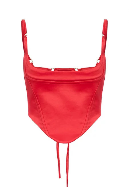 Къс корсет с връзки - Червен