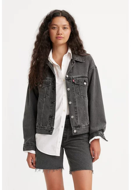 Дънково яке 90's Trucker със свободна кройка - Избеляло черно