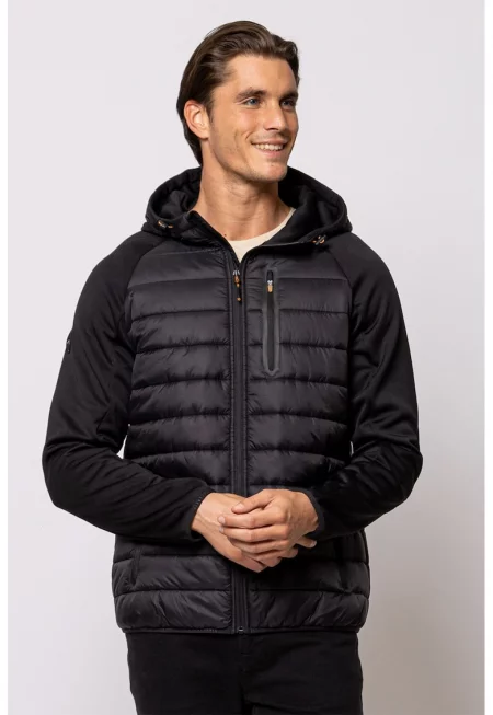 Олекотено яке с качулка - Черен