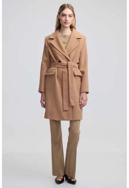 Палто с вълна с колан