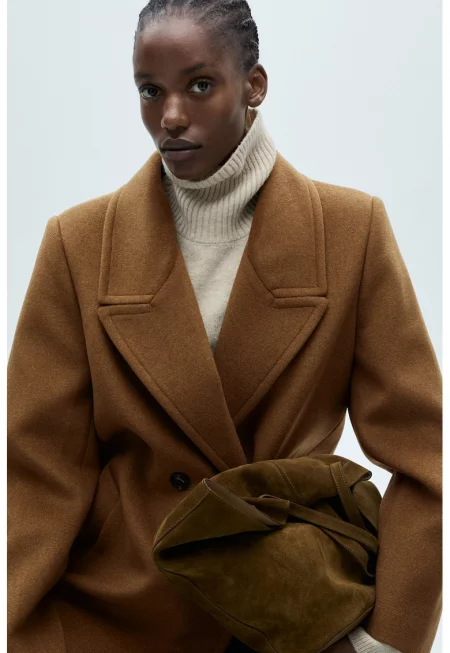 Двуредно дълго палто с вълна