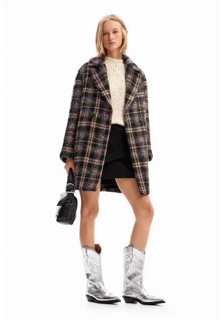 Мъхесто палто с каре