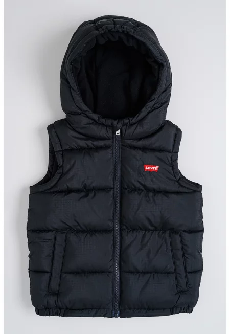 Елек с качулка и скосени джобове - Черен