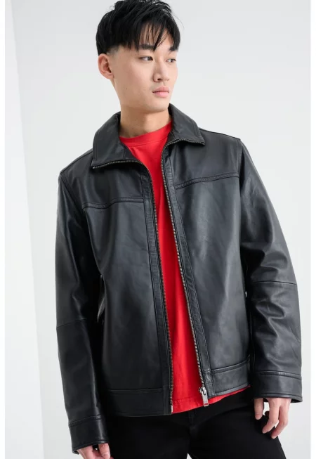 Кожено яке Jorest с цип - Черен