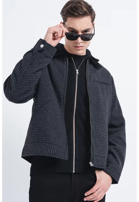 Карирано яке със стандартна кройка - Черен/Tъмносив