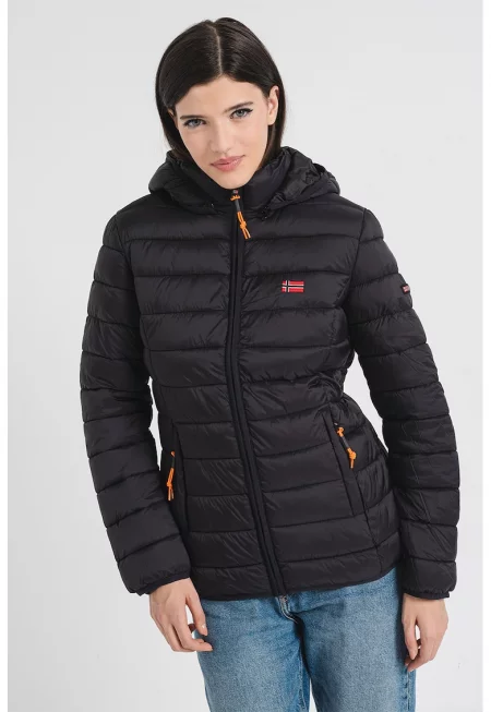 Късо зимно яке с качулка - Черен