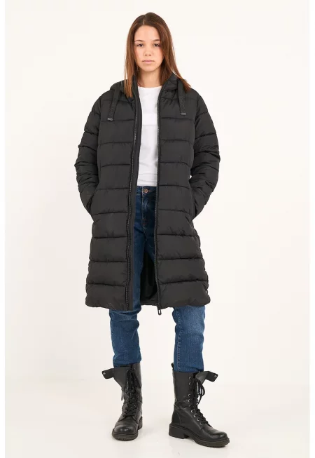 Подплатено зимно яке с качулка - Тъмнокафяв
