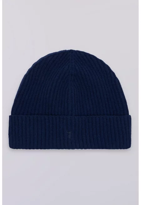 Рипсена шапка от кашмир - Ултрамарин синьо